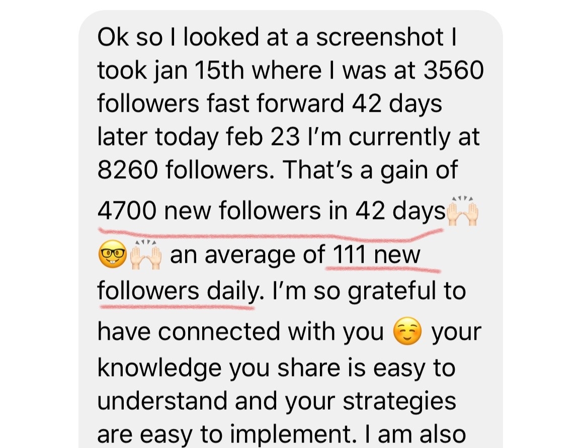 I highly recommend for anyone trying to grow to join the Instagram Guru. It is so so worth the money and the investment!”
